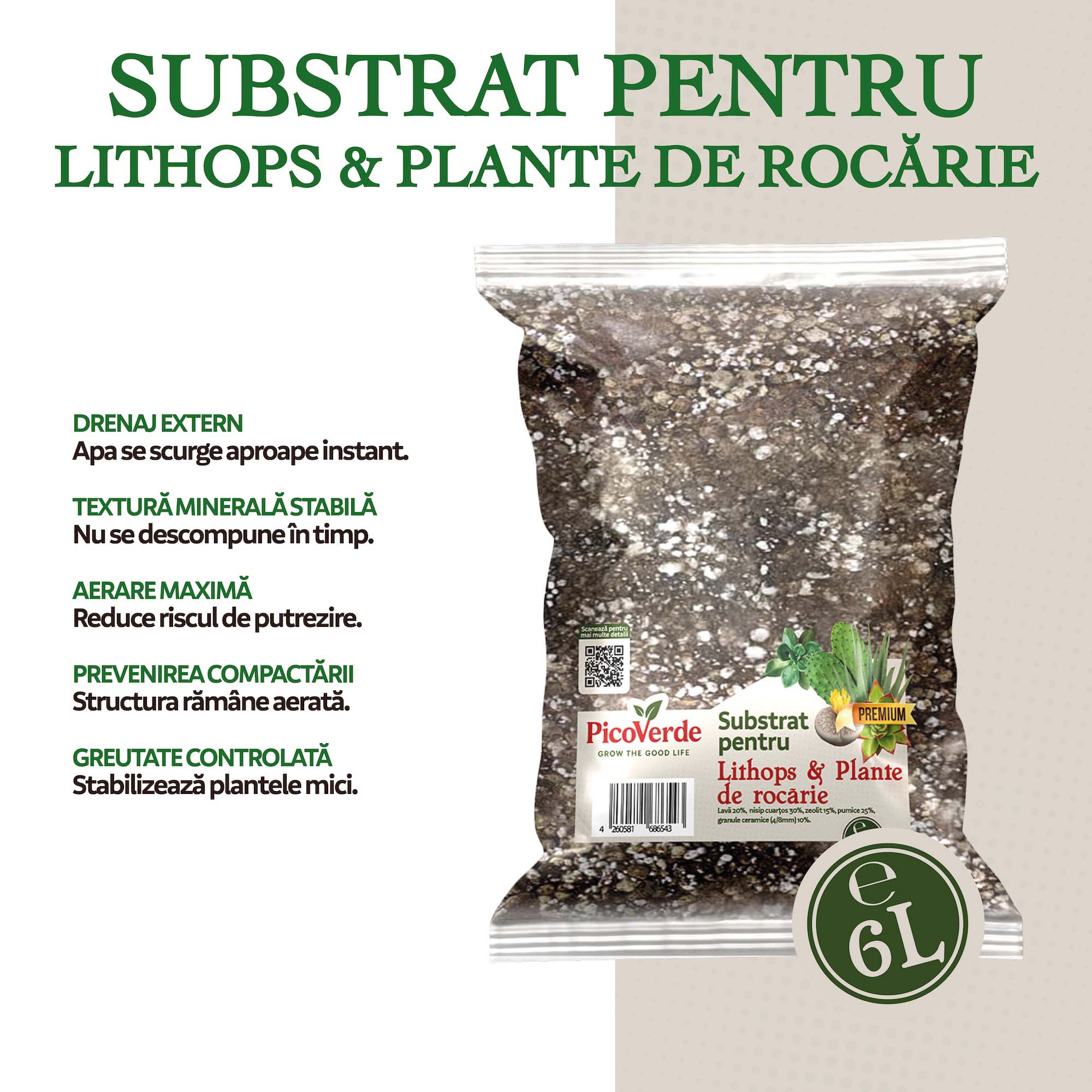 Cantitate Substrat pentru Lithops & plante de rocărie, 6 litri